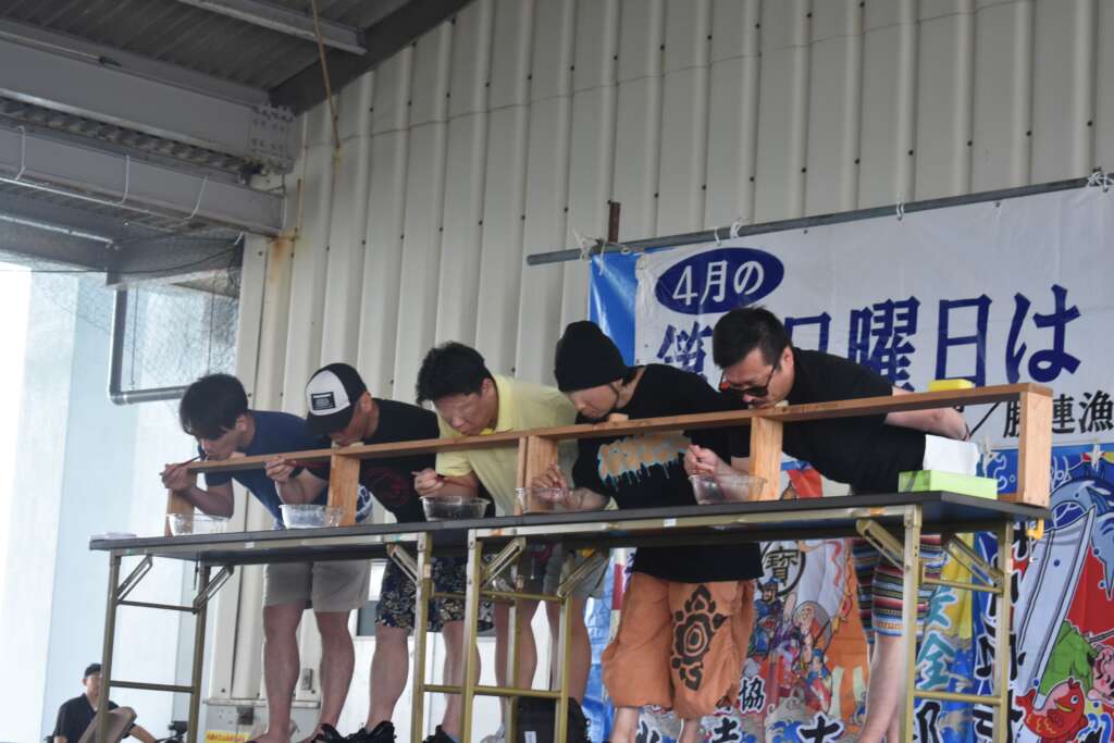 モズク早食い大会では、男子・女子・子供の部に分かれて競い合い、会場は大いに盛り上がりました(^^♪
