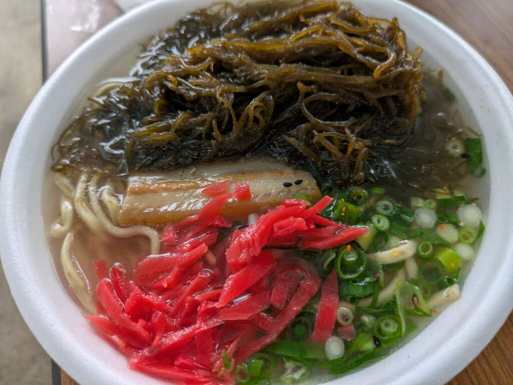 モズクそば(^^)/ モズクが練り込まれた麺と新鮮なモズクのトッピングが相性抜群で最高に美味しかったです(^_-)-☆